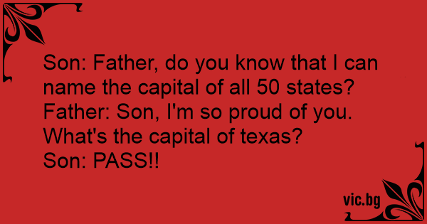 Father: Son, I'm so proud of you. What's the capital of texas?