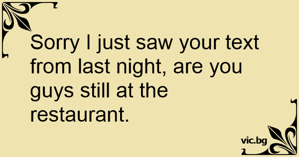 Sorry I just saw your text from last night, are you guys still at the restaurant.
