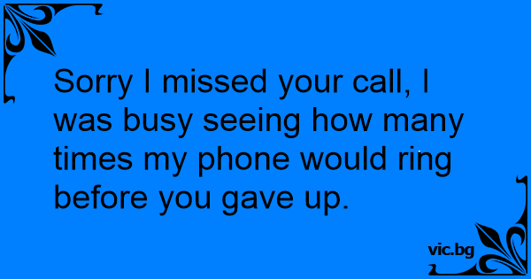 Sorry I missed your call, I was busy seeing how many times my phone would ring before you gave up.