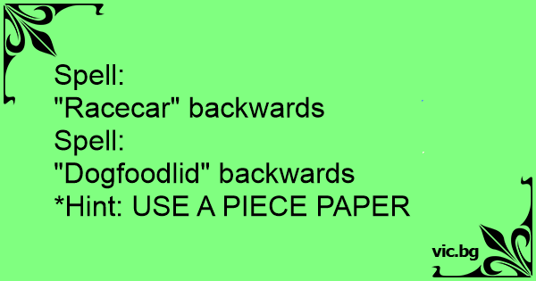 Spell: "Racecar" backwards...