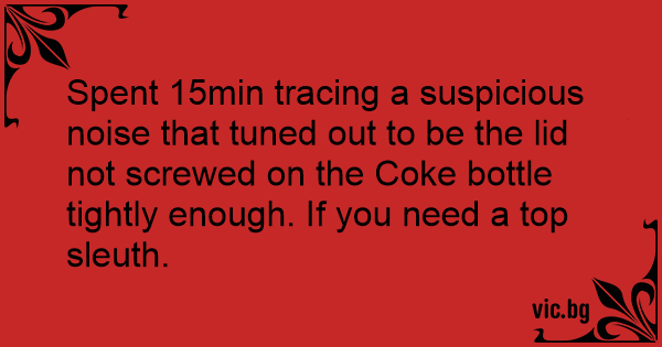 Spent 15min tracing a suspicious noise that tuned out to be the lid not sсrеwеd on the Coke bottle tightly enough. If you need a top sleuth.