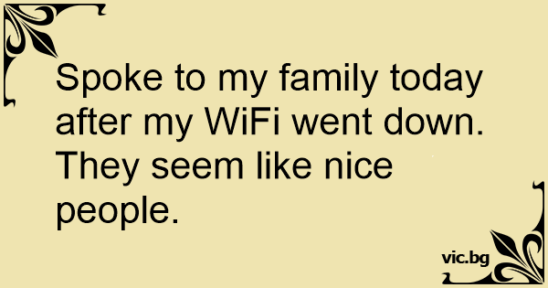 Spoke to my family today after my WiFi went down. They seem like nice people.