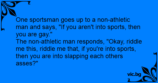 The non-athletic man responds, "Okay, riddle me this, riddle me that, if you're into sports, then you are into slapping each others аssеs?"