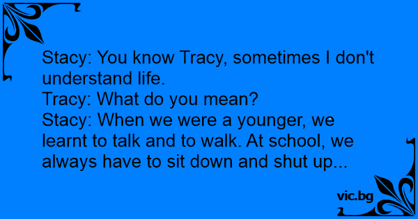 Stacy: When we were a younger, we learnt to talk and to walk. At school, we always have to sit down and shut up...