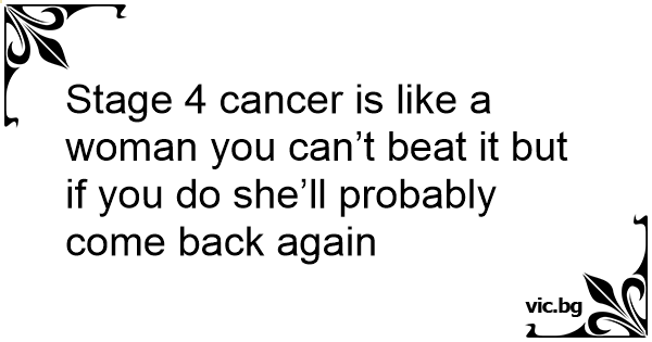 Stage 4 cancer is like a woman you can’t beat it but if you do she’ll probably come back again
