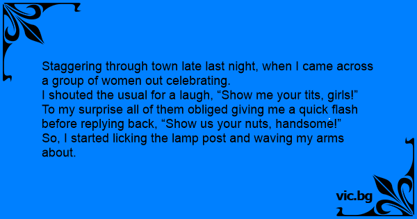 I shouted the usual for a laugh, “Show me your тiтs, girls!”