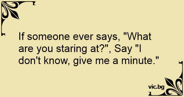 If someone ever says, "What are you staring at?", Say "I don't know, give me a minute."
