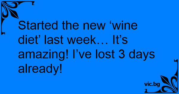 Started the new ‘wine diet’ last week… It’s amazing! I’ve lost 3 days already!