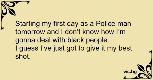 Starting my first day as a Police man tomorrow and I don’t know how I’m gonna deal with black people.