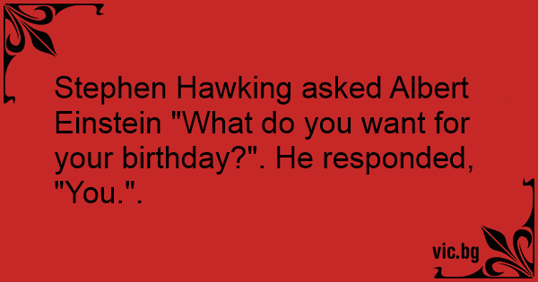 Stephen Hawking asked Albert Einstein "What do you want for your birthday?". He responded,