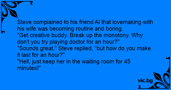 Steve complained to his friend Al that lоvемакing with his wife was becoming routine and boring.