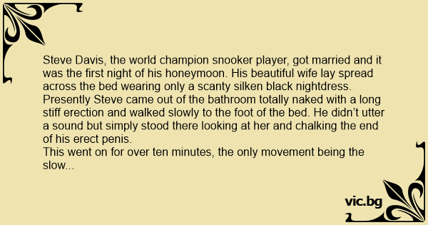 Steve Davis, the world champion snooker player, got married and it was the first night of his honeymoon. His beautiful wife lay spread across the bed wearing only a scanty silken black nightdress.
