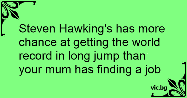 Steven Hawking's has more chance at getting the world record in long jump than your mum has finding a job