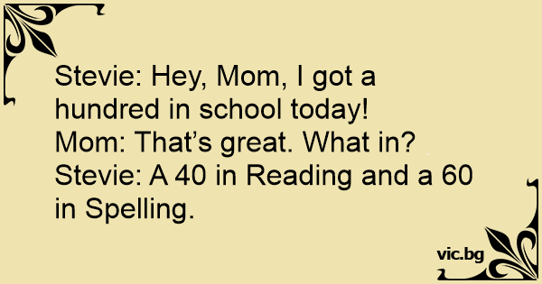 Stevie: Hey, Mom, I got a hundred in school today!