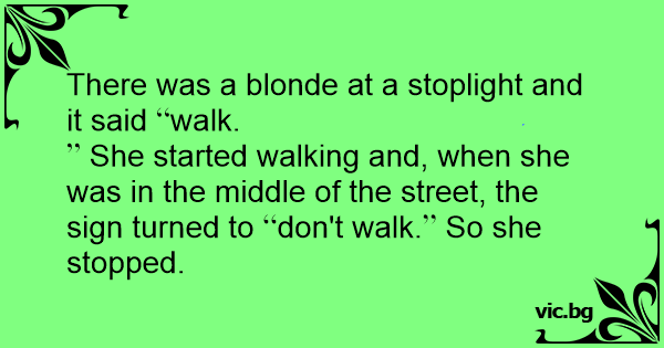 There was a blonde at a stoplight and it said walk.