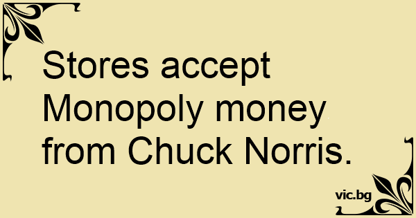 Stores accept Monopoly money from Chuck Norris.