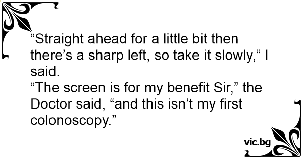 “The screen is for my benefit Sir,” the Doctor said, “and this isn’t my first colonoscopy.”