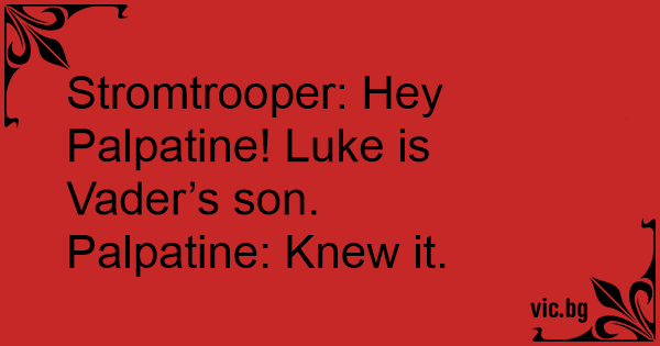 Stromtrooper: Hey Palpatine! Luke is Vader’s son.