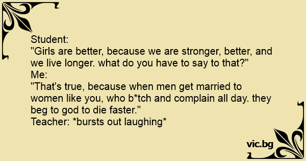 "Girls are better, because we are stronger, better, and we live longer. what do you have to say to that?"