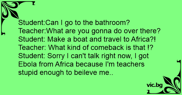 Student: Sorry I can't talk right now, I got Ebola from Africa because I'm teachers sтuрid enough to beileve me..