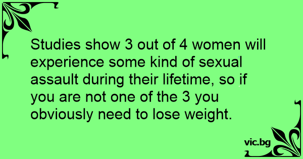 Studies show 3 out of 4 women will experience some kind of sеxuаl аssаulт during their lifetime, so if you are not one of the 3 you obviously need to lose weight.
