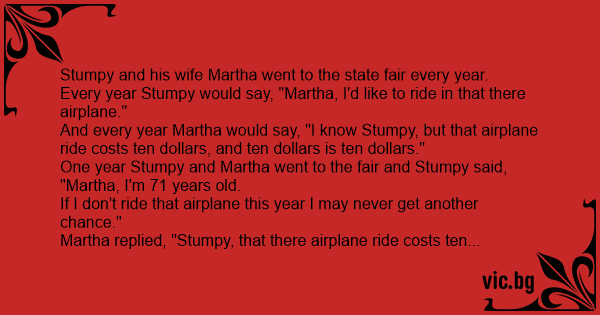 Martha replied, "Stumpy, that there airplane ride costs ten dollars, and ten dollars is ten dollars."