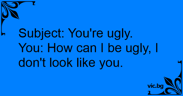 You: How can I be ugly, I don't look like you.