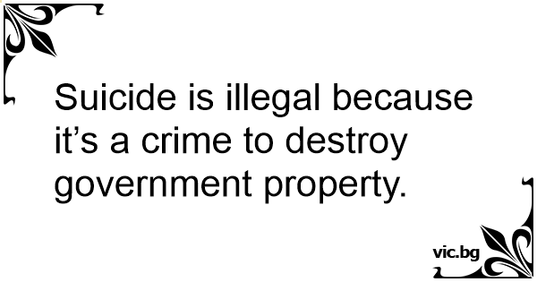 Suicide is illegal because it’s a сriме to destroy government property.