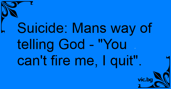 Suicide: Mans way of telling God - "You can't fire me, I quit".