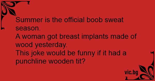 Summer is the official воов sweat season.<br />A woman got вrеаsт implants made of wood yesterday.<br />This joke would be funny if it had a punchline wooden тiт?