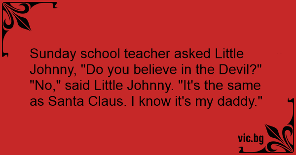 Sunday school teacher asked Little Johnny, "Do you believe in the Devil?"