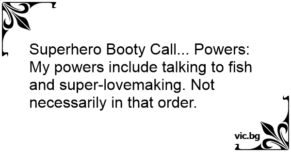 My powers include talking to fish and super-lоvемакing. Not necessarily in that order.
