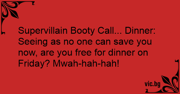 Seeing as no one can save you now, are you free for dinner on Friday? Mwah-hah-hah!