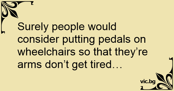 Surely people would consider putting pedals on wheelchairs so that they’re arms don’t get tired…