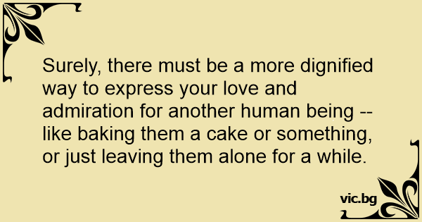 Surely, there must be a more dignified way to express your love and admiration for another human being -- like baking them a cake or something, or just leaving them alone for a while.