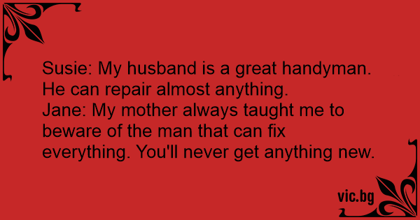 Susie: My husband is a great handyman. He can repair almost anything.