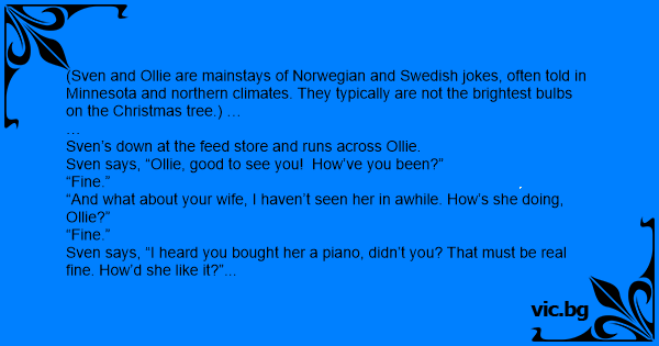 (Sven and Ollie are mainstays of Norwegian and Swedish jokes, often told in Minnesota and northern climates. They typically are not the brightest bulbs on the Christmas tree.) …