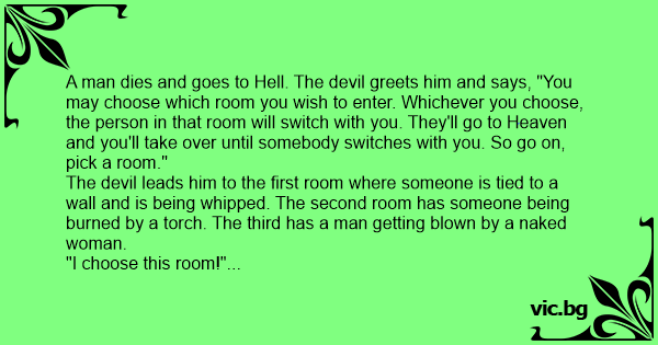 Un hombre murió y fue en viado al infierno. Allí encontró al diablo, quien le dijo que acababan de introducir algunas mejoras y que ahora cada nuevo inquilino podía elegir entre tres tipos de tortura.
