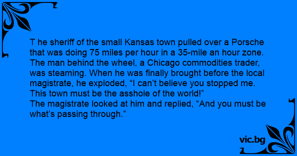 The magistrate looked at him and replied, “And you must be what’s passing through.”