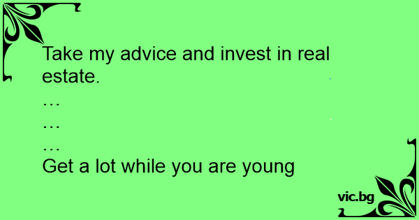 Take my advice and invest in real estate.