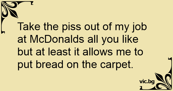 Take the рiss out of my job at McDonalds all you like but at least it allows me to put bread on the carpet.