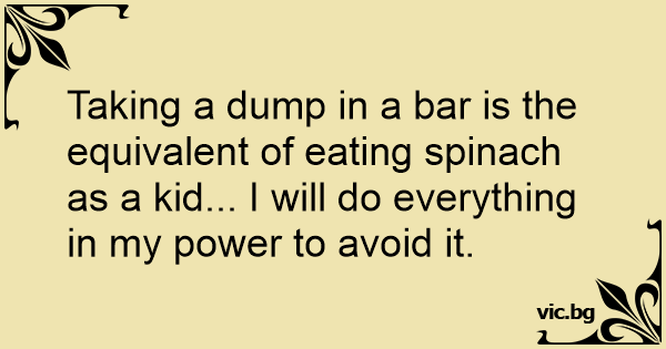 Taking a dump in a bar is the equivalent of eating spinach as a kid... I will do everything in my power to avoid it.