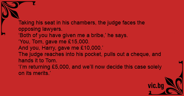 The judge reaches into his pocket, pulls out a cheque, and hands it to Tom.
