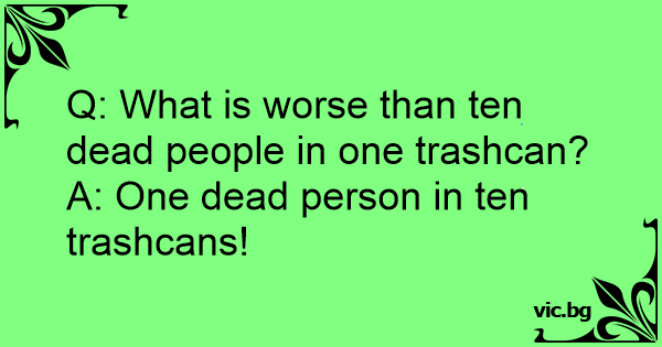 Q: What is worse than ten dead people in one trashcan?