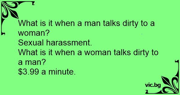 If a man talks dirty to a woman, that's sexual harassment. If a woman talks dirty to a man, that'll be $6.50 a minute.