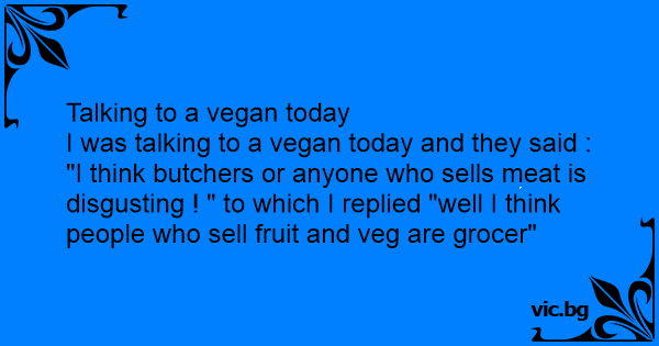 "I think butchers or anyone who sells meat is disgusting ! " to which I replied "well I think people who sell fruit and veg are grocer"