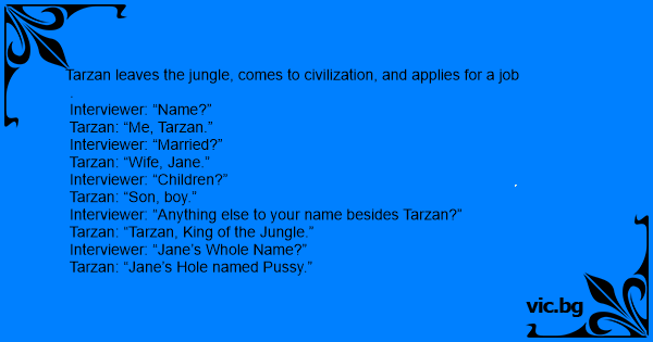 Tarzan leaves the jungle, comes to civilization, and applies for a job