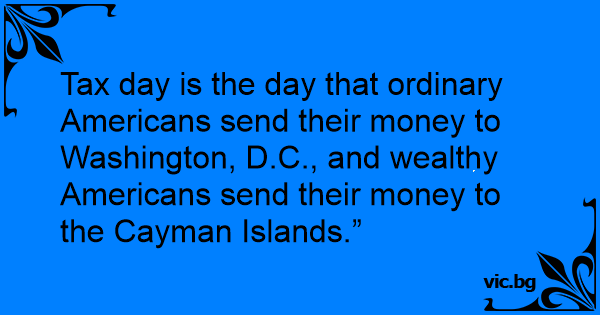 Tax day is the day that ordinary Americans send their money to Washington, D.C., and wealthy Americans send their money to the Cayman Islands.”