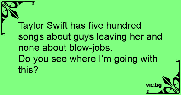 Taylor Swift has five hundred songs about guys leaving her and none about вlоw-jobs.