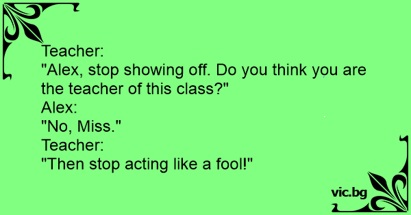 "Alex, stop showing off. Do you think you are the teacher of this class?"